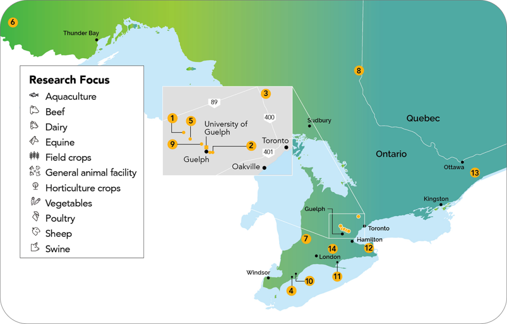ARIO owns 14 properties covering approximately 5,600 acres of farmland and more than 220 buildings across Ontario enabling research and innovation for agriculture. 13 of ARIO’s research properties are managed by the University of Guelph through the Ontario Agri-Food Innovation Alliance. The 14th property is managed by Vineland Research and Innovation Centre.
